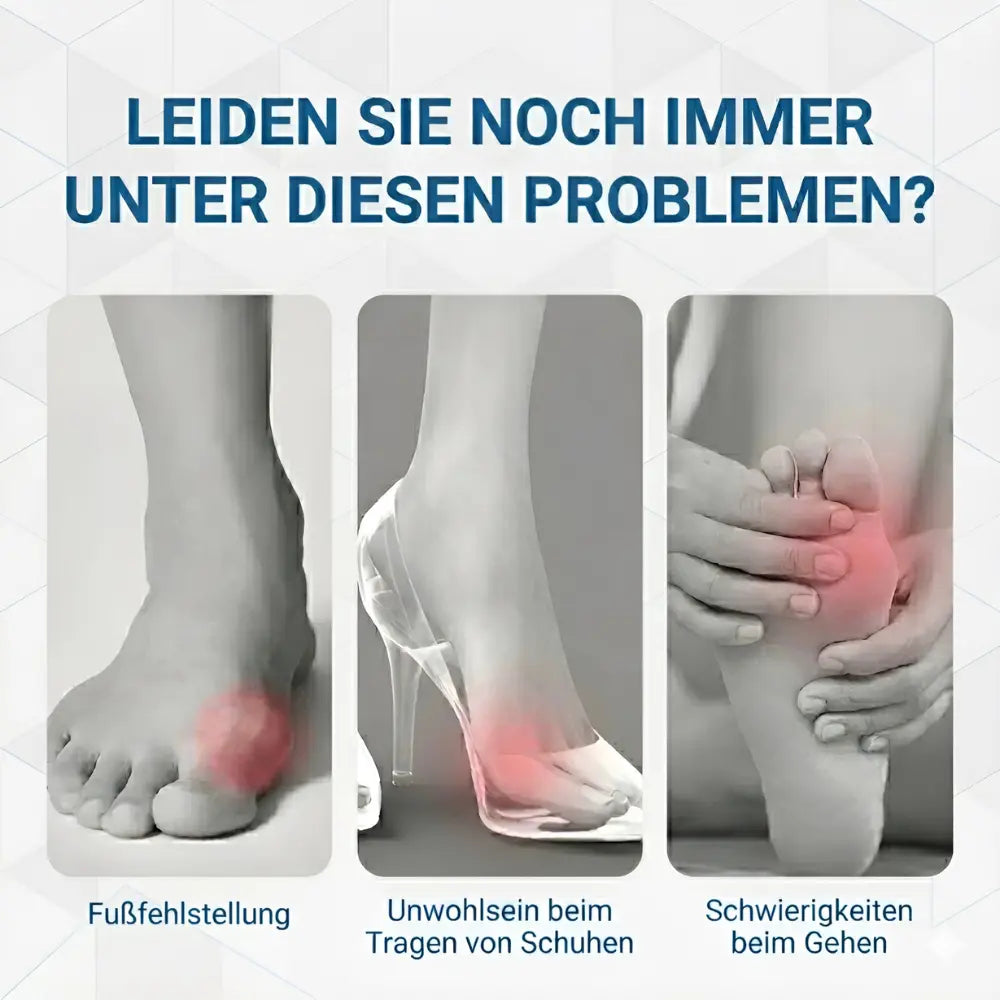 Millionen Menschen leiden täglich unter den Folgen eines Hallux Valgus. Unsere Nachtschiene korrigiert die Zehenfehlstellung sanft während Sie schlafen — ohne Eingriff, ohne Risiko.